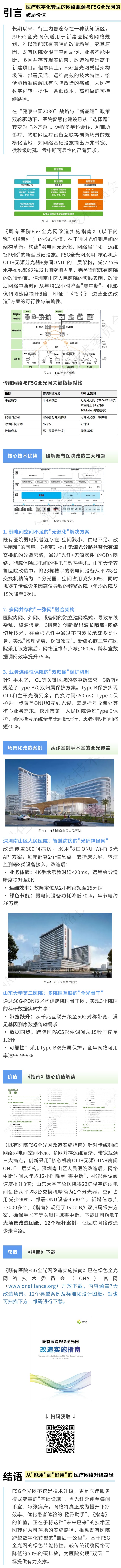 《既有医院F5G全光网改造实施指南》深度解读,聚焦7大技术优势,破解传统网络带宽瓶颈与运维难题。通过深圳南山医院、山东大学齐鲁医院等案例,展示如何实现医疗影像读取速度提升至1秒/1000张,为既有医院数字化转型提供可持续路径。